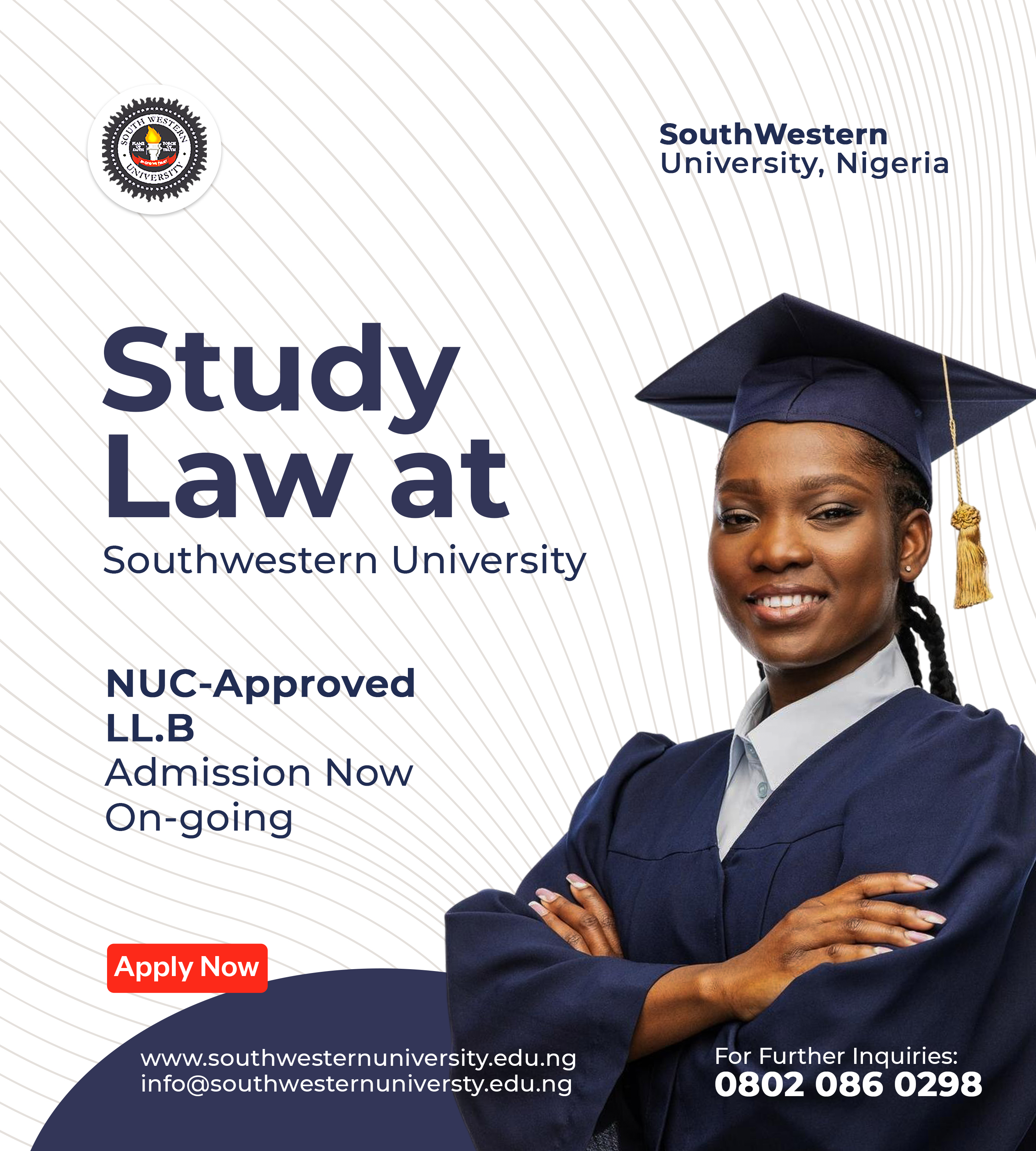Applications are invited from suitably qualified, goal-driven candidates for admission into Southwestern University for the under listed Full Time Degree Programmes for 2025/2026 Academic Session.